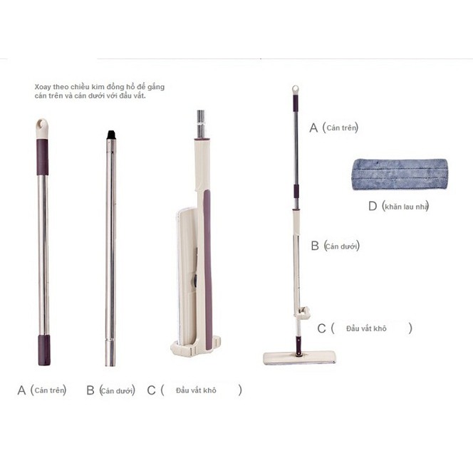 Đầu lau có diện tích lớn, làm sạch sàn nhanh và sạch thiết kế tự vắt không bẩn tay.