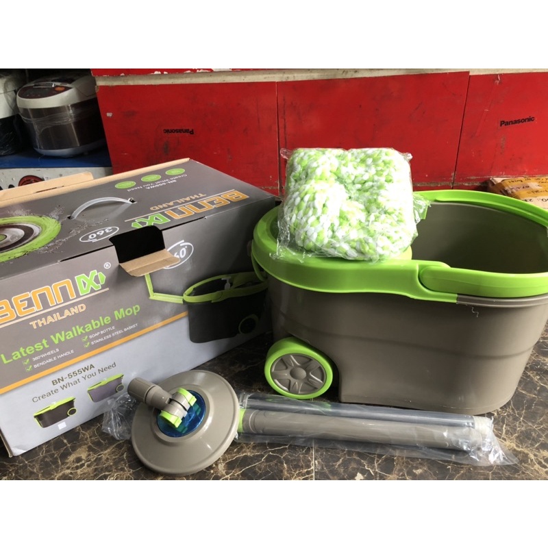 Giới thiệu Bộ chổi lau nhà Bennix Thái Lan, cán chổi inox, có bánh xe đẩy.