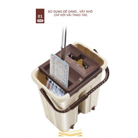 Bộ chổi lau nhà, cây lau nhà thông minh tự vắt kèm thùng 2 ngăn ,kèm 2 miếng lau, cây lau nhàBỘ LAU NHÀ 360 ĐỘ, 2 BÔNG LAU, MẶT LAU HÌNH CHỮ NHẬT