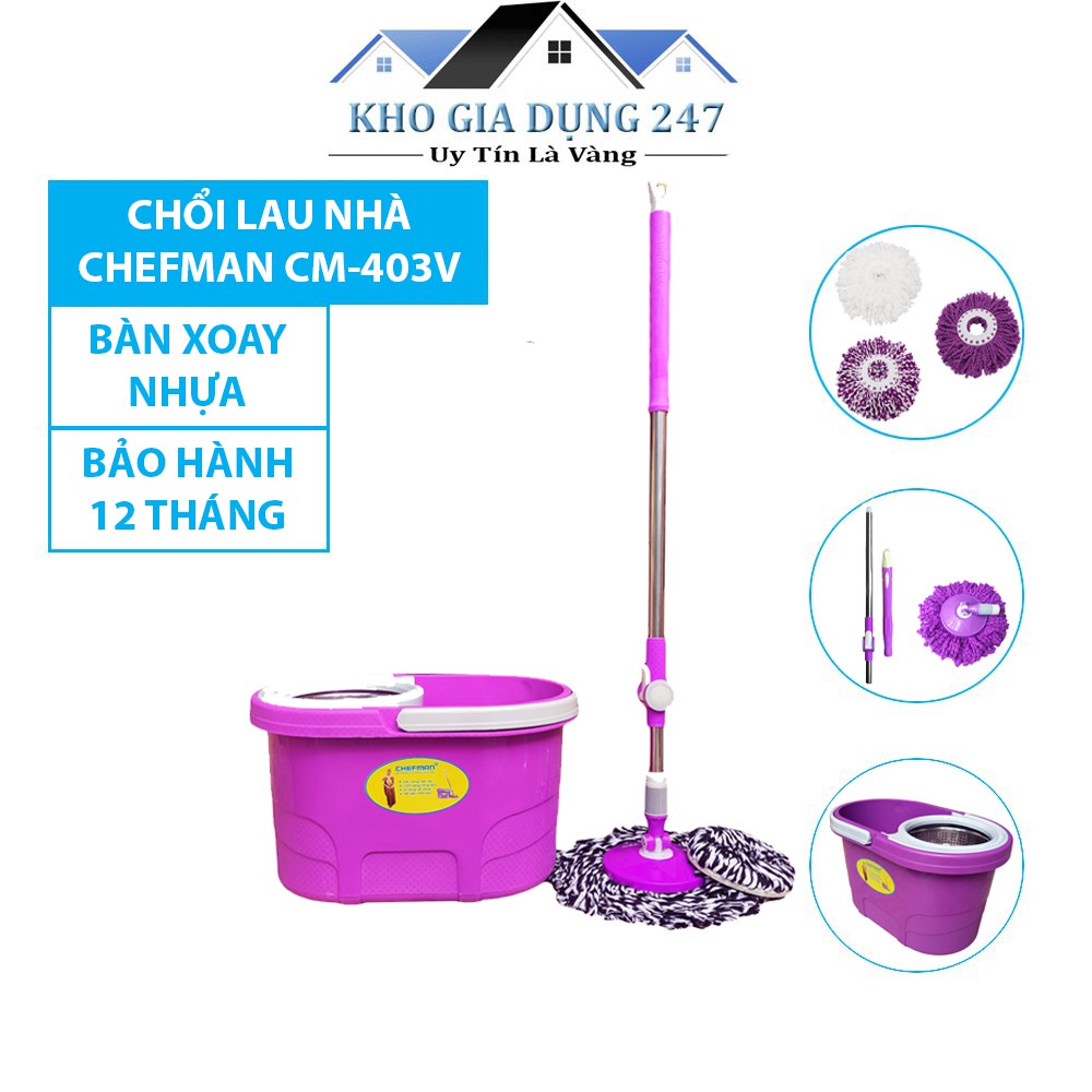 Chổi Lau Nhà Chefman CM - 413V Bàn Xoay Nhựa, Tặng Kèm 1 Bông Lau Nhà, Hàng Chính Hãng, Bảo Hành 12 Tháng