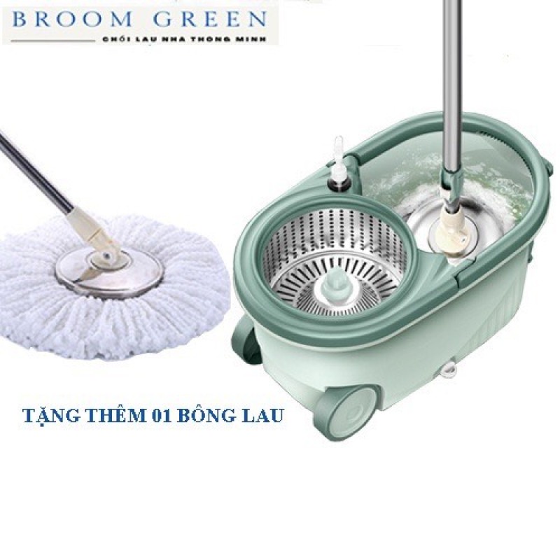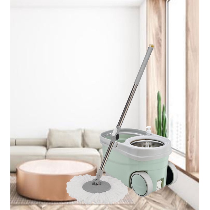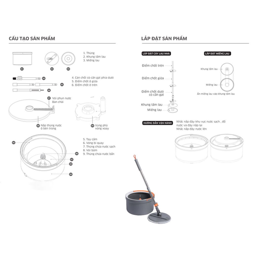 - Lồng vắt bằng inox chống gỉ, lỗ thoát nước tiện dụng nhằm vắt khô nước của bông lau hiệu quả, rổ quay li tâm giúp vắt khô đầu lau mà không cần dùng tay