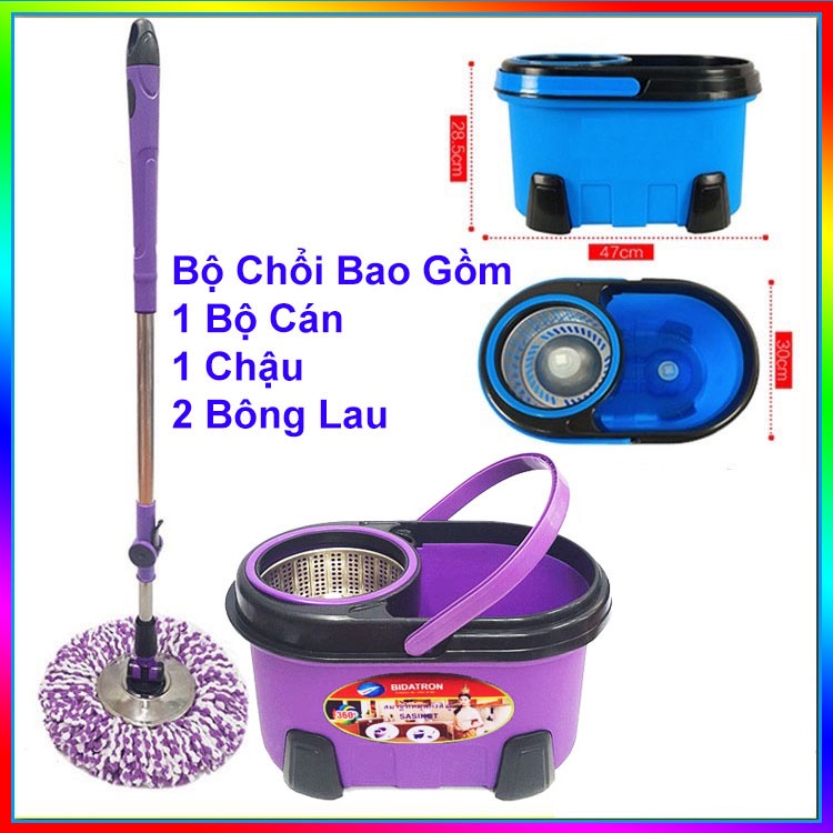 - 1 chậu, 1 cán lau, 1 bàn xoay và kèm theo 2 bông lau.