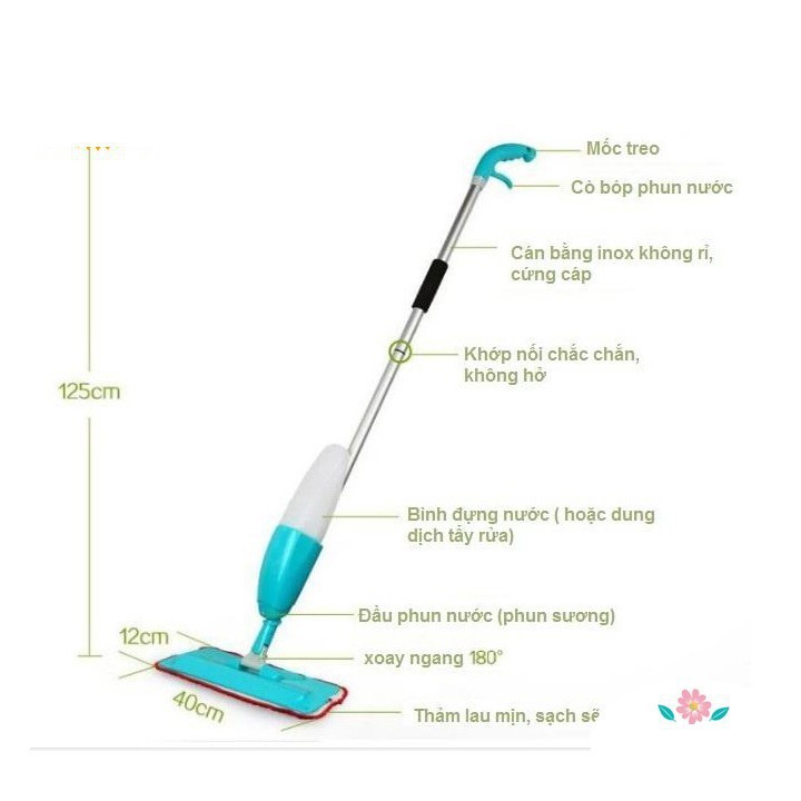 - Khi muốn phun nước bạn chỉ cần bấm cần gạt ngay phía dưới tay cầm, dung dịch lau sàn sẽ tự động phun ra giúp bạn dễ dàng lau sạch vết bẩn. Với thiết kế thông minh, sản phẩm thích hợp sử dụng trên các sàn như: sàn gỗ, sàn gạch ceramic, đá cẩm thạch…