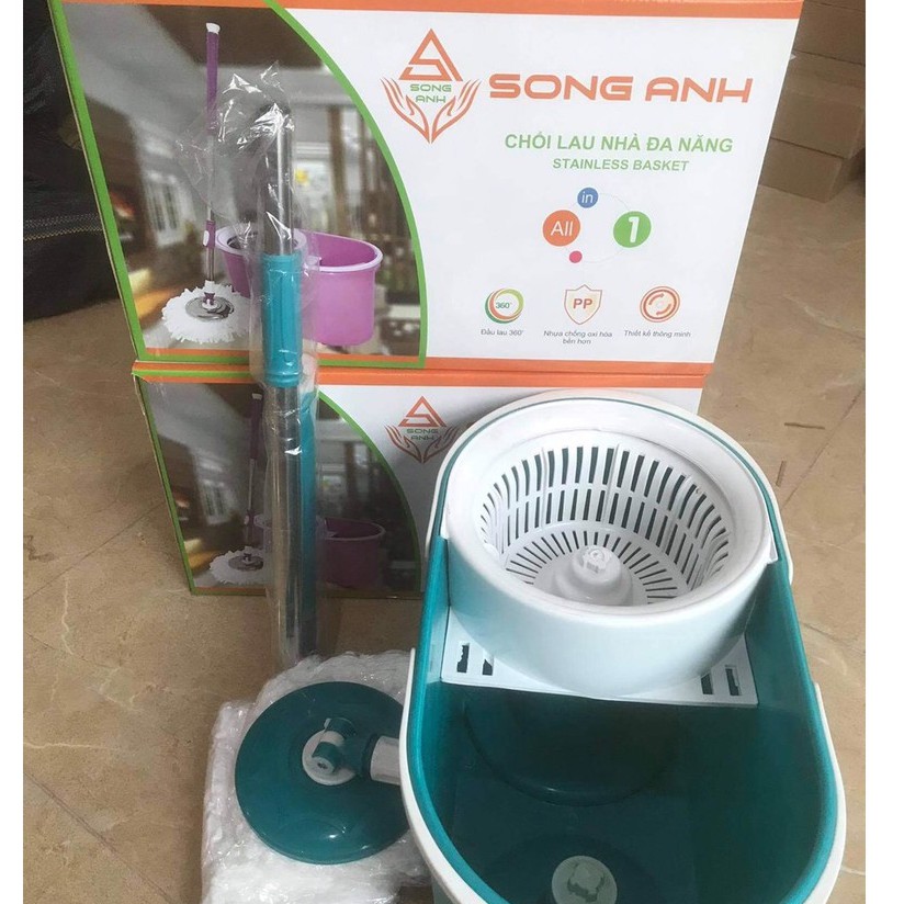 Bộ Chổi Lau Nhà Lồng Nhựa Cây Inox Mâm Nhựa Tặng Kèm 2 Bông Lau Song Anh