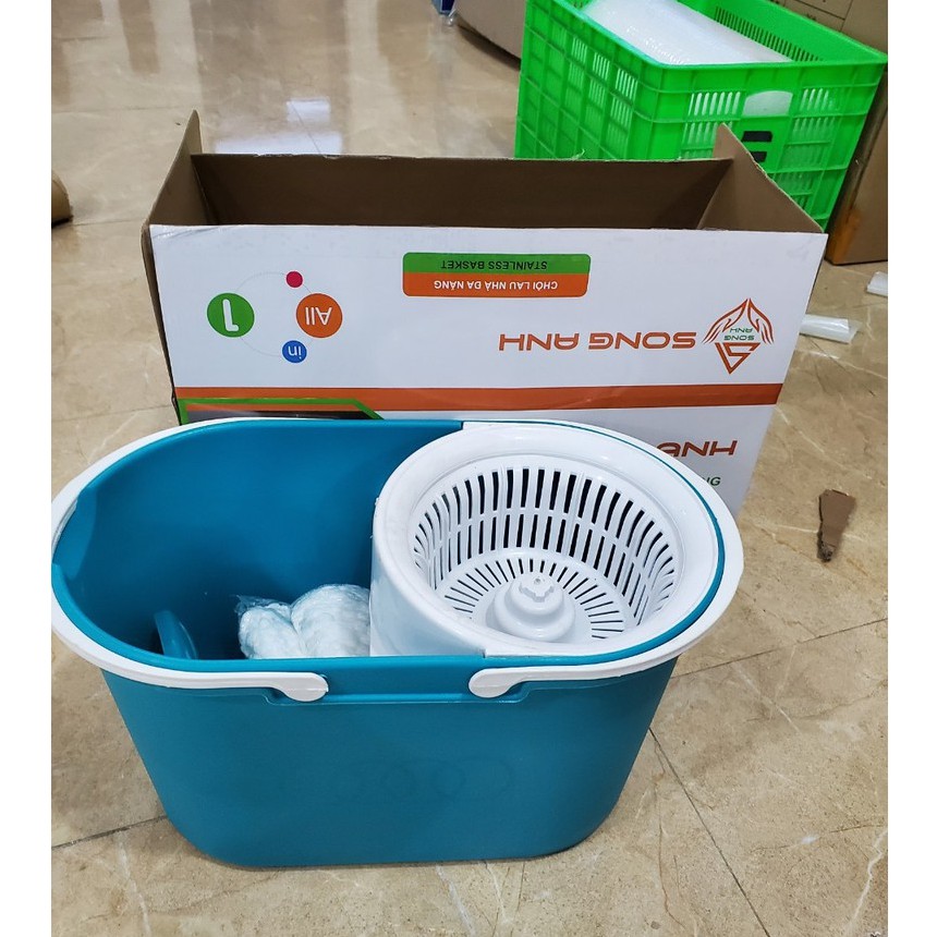 Bộ chổi lau nhà Song Anh Lồng nhựa Cây inox mâm nhựa - Tặng kèm 2 bông lau