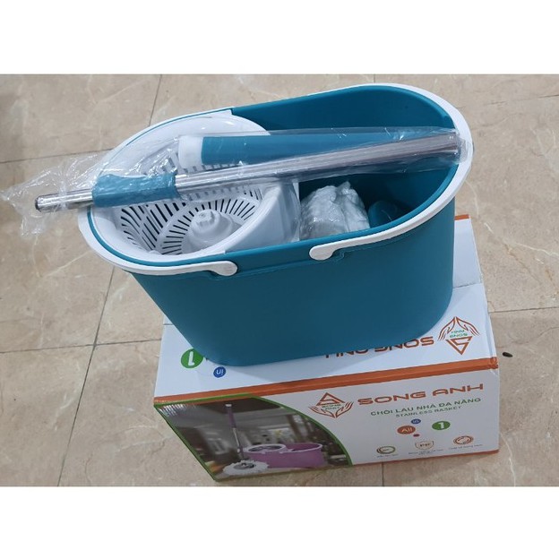 Giới thiệu Bộ chổi lau nhà Song Anh Lồng nhựa Cây inox mâm nhựa - Tặng kèm 2 bông lau