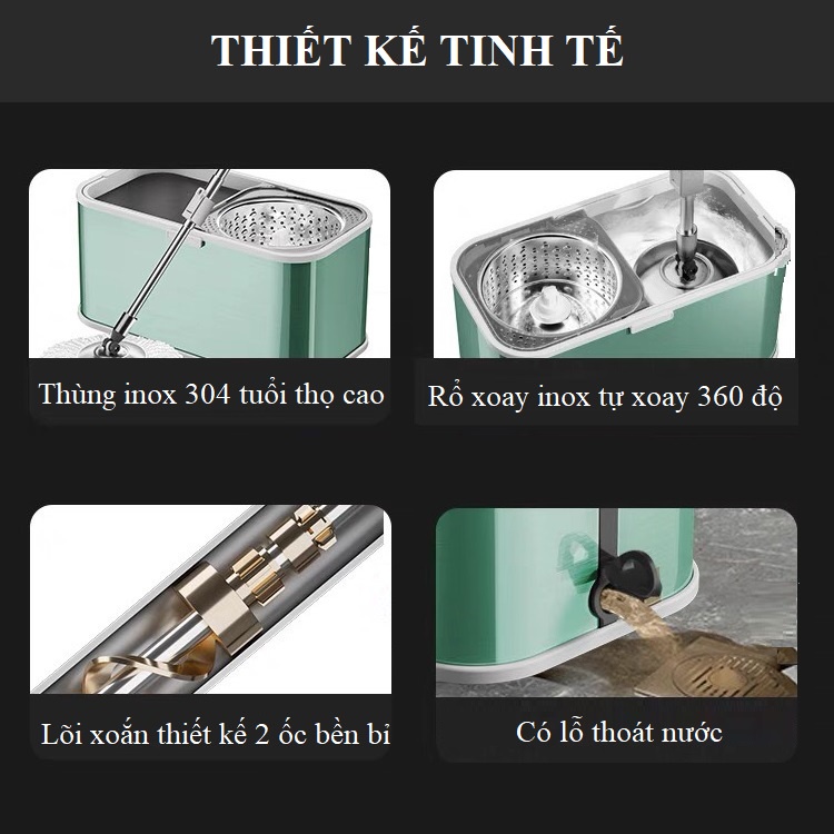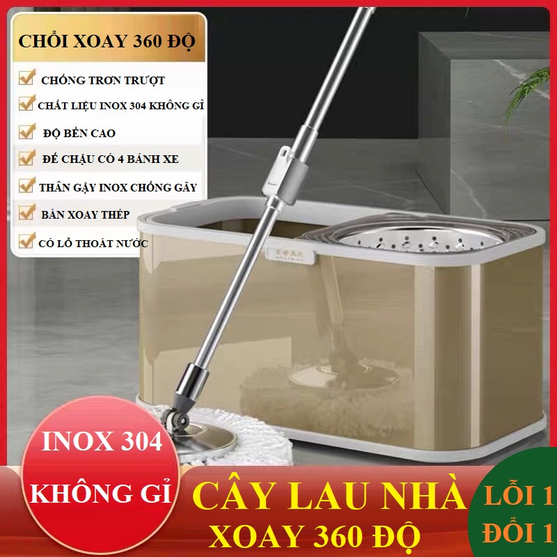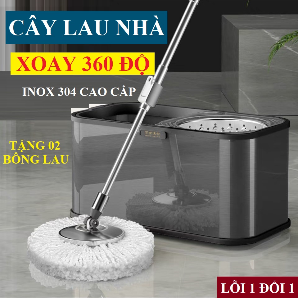 CHỔI LAU NHÀ THÔNG MINH 360 ĐỘ - INOX CAO CẤP THẾ HỆ MỚI - CÂY LAU NHÀ CHẾ ĐỘ TỰ VẮT