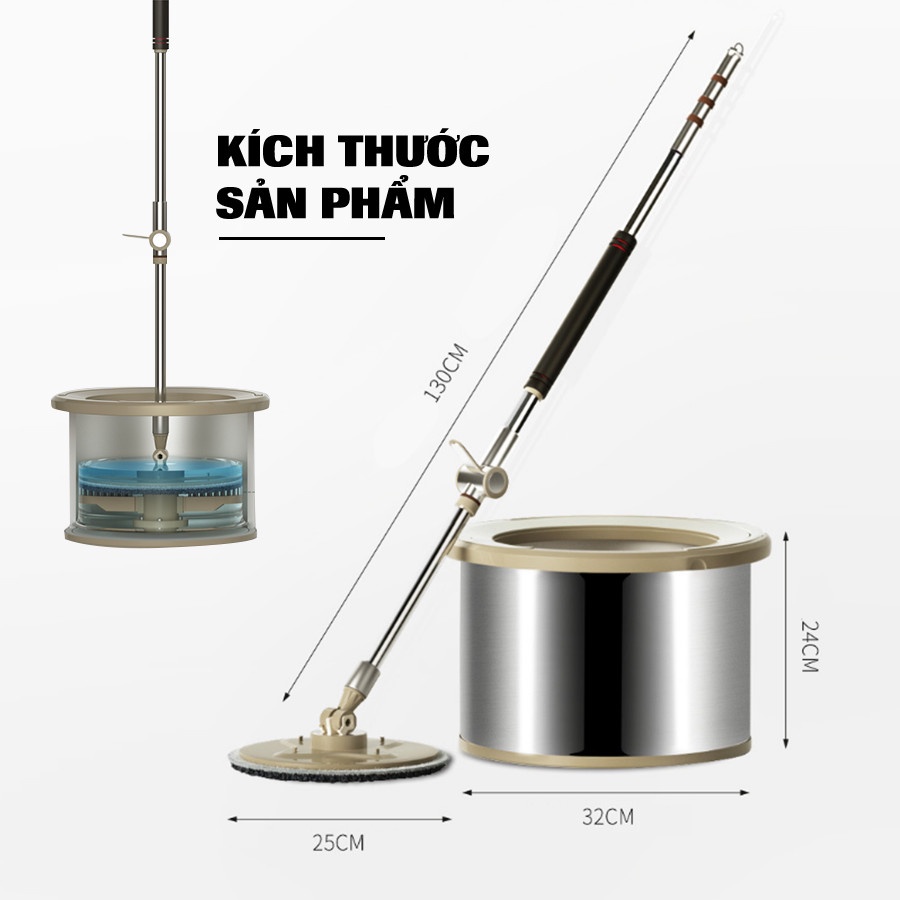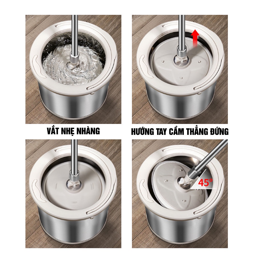 CHỔI LAU NHÀ THÔNG MINH 360 ĐỘ - INOX CAO CẤP THẾ HỆ MỚI - CÂY LAU NHÀ CHẾ ĐỘ TỰ VẮT - Siêu sạch, siêu bền