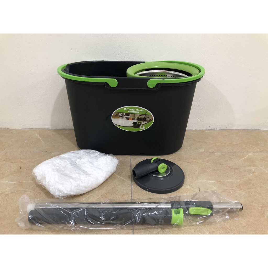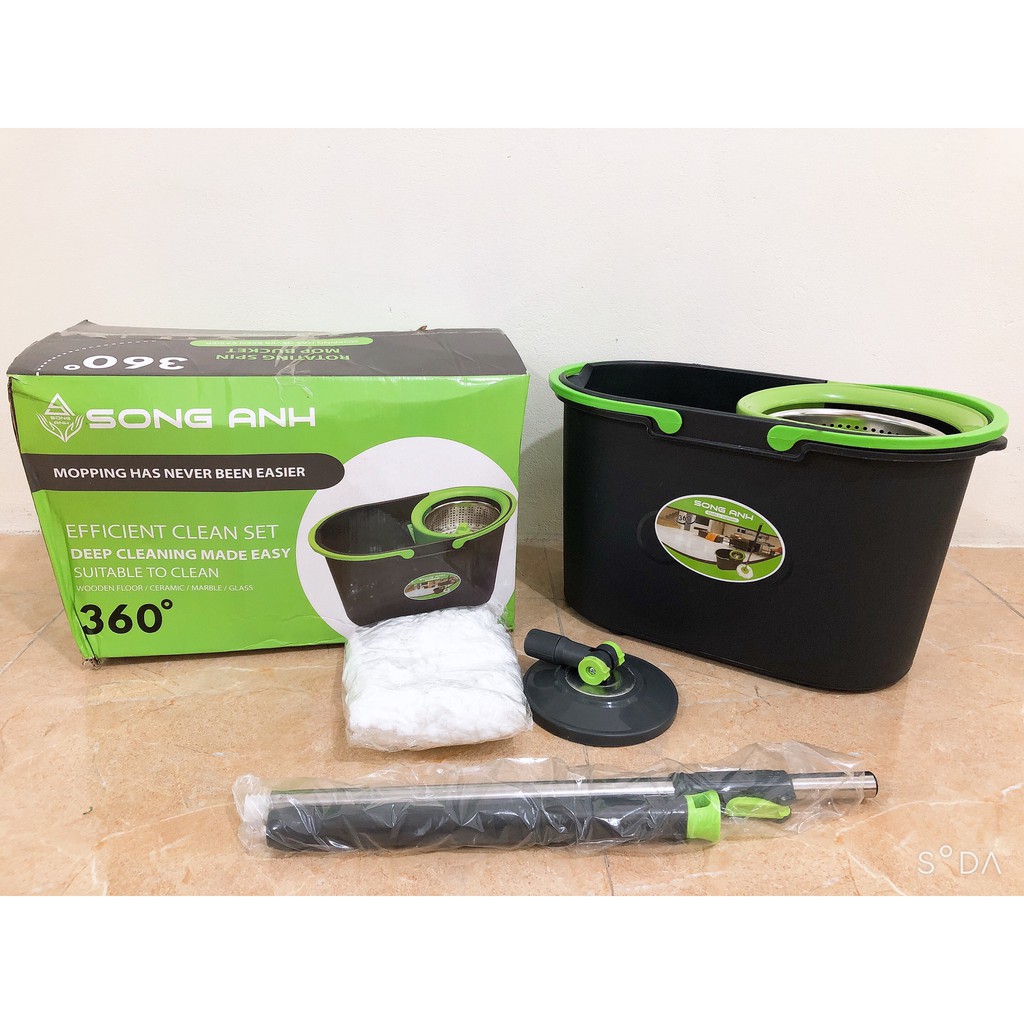 - Bộ chổi gồm: thùng nhựa nguyên khối có lồng vắt, 1 cây chổi và shop TẶNG thêm 2 bông lau
