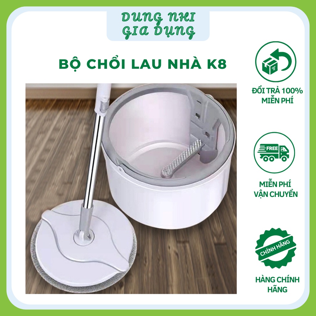 Bộ Chổi Lau Nhà Thông Minh KITIMOP Với Chế Độ Tự Xoay Vắt 360 Độ Lau Sạch Gấp 3 Lần Chổi Thường Chổi Lau Sàn K8