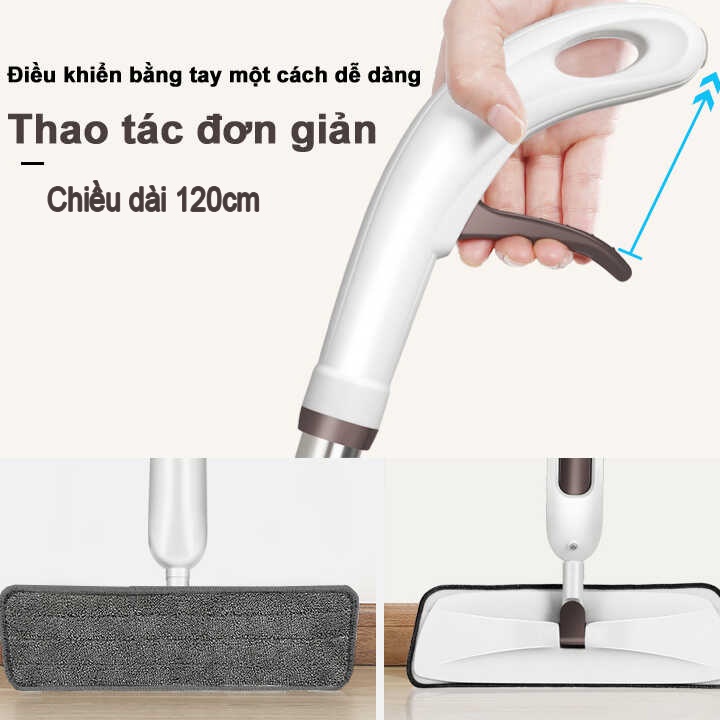 Cây lau nhà có thể được điều chỉnh để chỉ phun với diện tích 100cm vừa đủ. Đi kèm với một miếng lau vải sợi hoạt tính giúp lau sạch tiết kiệm thời gian