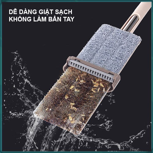 - KHÔNG phải khom lưng, KHÔNG dùng tay vắt, cây lau có thể để đứng 90 độ, để nghiêng 180 độ, có thể xoay vòng 360 độ dễ dàng sử dụng.