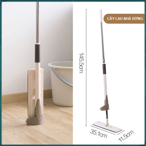 - Cây lau nhà tự vắt thiết kế thông minh với đầu lau sàn hình chữ nhật tạo nên lực ly tâm lớn.