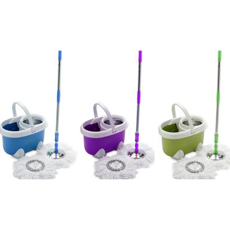 Bộ sản phẩm gồm: 1 thùng vắt, 1 bàn xoay 360 độ, 2 đoạn cán lau, 2 đầu bông lau.