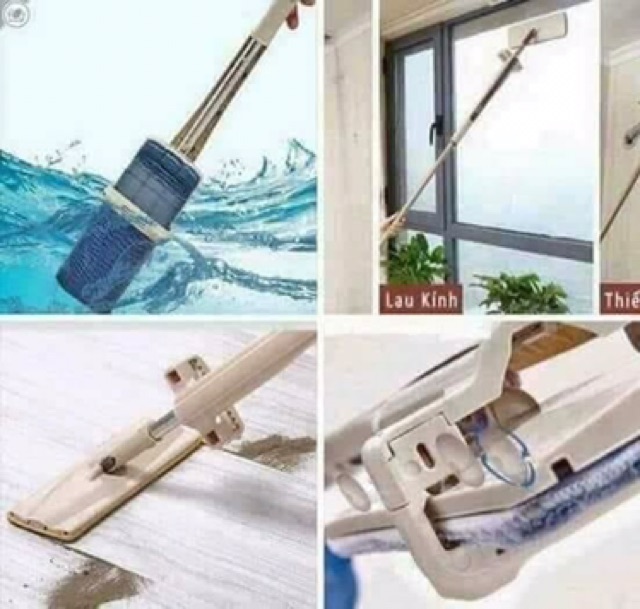 - Chổi làm từ sợi bông tĩnh điện nano, hút bẩn cả khô cả ướt. Không vắt nước thì để quét nhà luôn