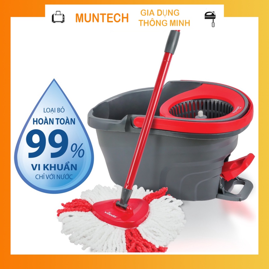 Cây chổi lau nhà tự vắt thông minh đầu tam giác 360 độ xô giặt bằng chân VILEDA Turbo CHÍNH HÃNG MUNTECH CL02