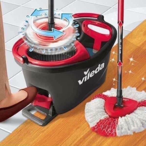 👉🏻 Cây lau nhà cao cấp Vileda Turbo Easy Wring&Clean là sự kết hợp giữa cây lau sợi microfiber và một chiếc xô với bộ vắt vận hành bằng bàn đạp chân được sử dụng để vắt dễ dàng và làm sạch sàn nhanh hơn.