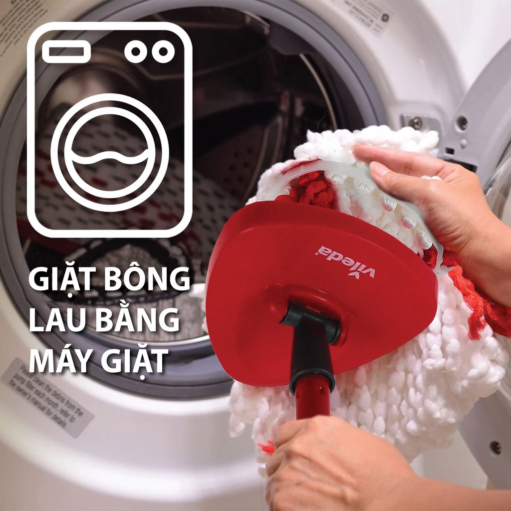 👉🏻Bông lau của cây lau nhà này được cấu tạo bởi hàng triệu sợi microfiber có thể giữ lại các hạt bụi, và cả vi khuẩn. Hơn thế nữa, bông lau VILEDA có thể được giặt lại bằng máy giặt để có thể sử dụng lại nhiều lần. Khuyến cáo là trong nhà bạn nên có các bông lau thay thế để dùng luân phiên, giặt riêng với đồ khác để kéo dài tuổi thọ của bông lau.