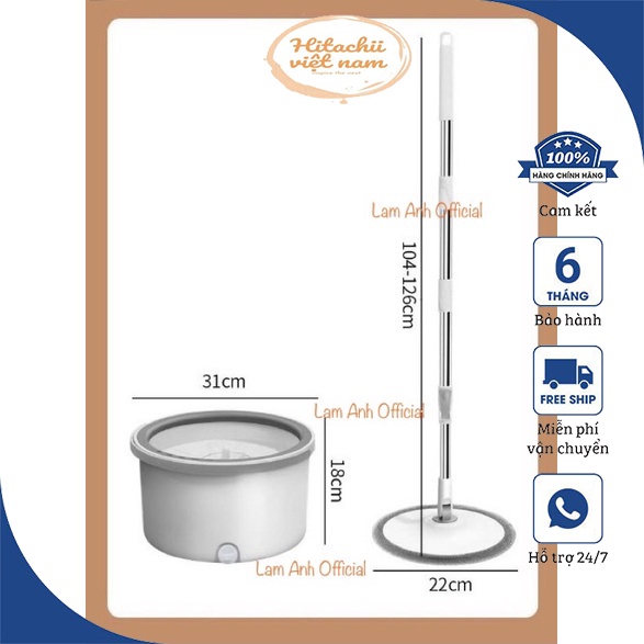 + Cây lau chất liệu inox không gỉ, kích thước dài từ 111-134cm, bàn lau hình tròn