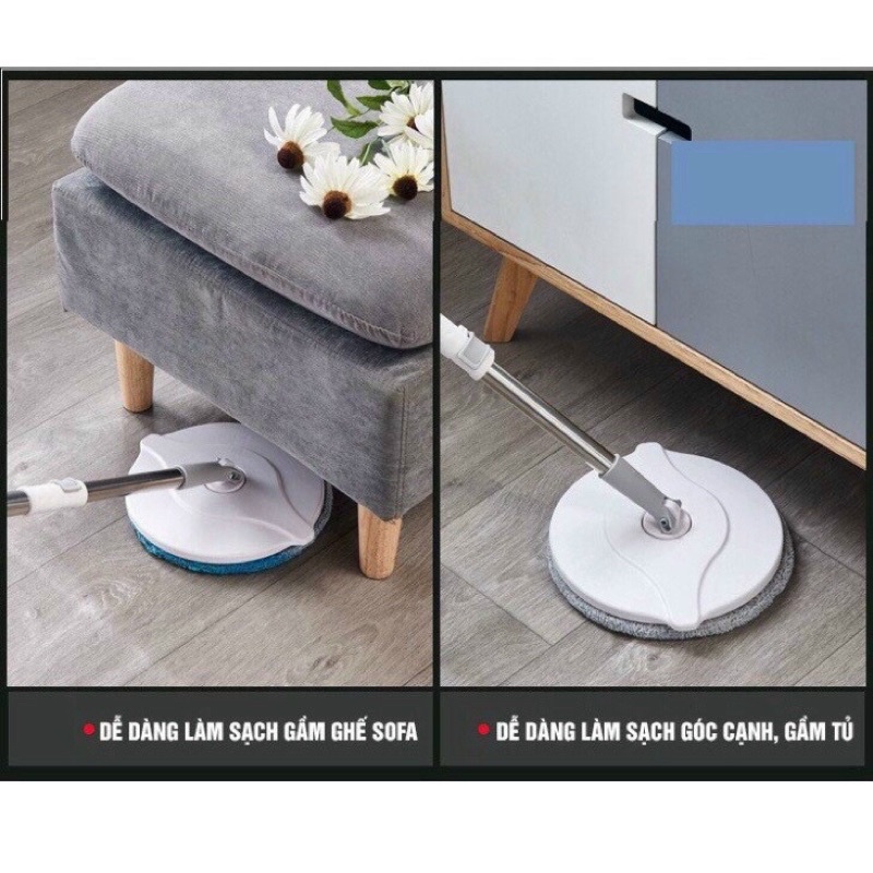 - Bàn lau hình tròn, đường kính 25cm có thể xoay 360 độ tiện lợi, bàn lau to giúp lau nhanh hơn và hiệu quả nhân đôi. Giẻ lau chất liệu microfiber rất dày thấm hút nước cực tốt, hút bụi và lông tóc hiệu quả.