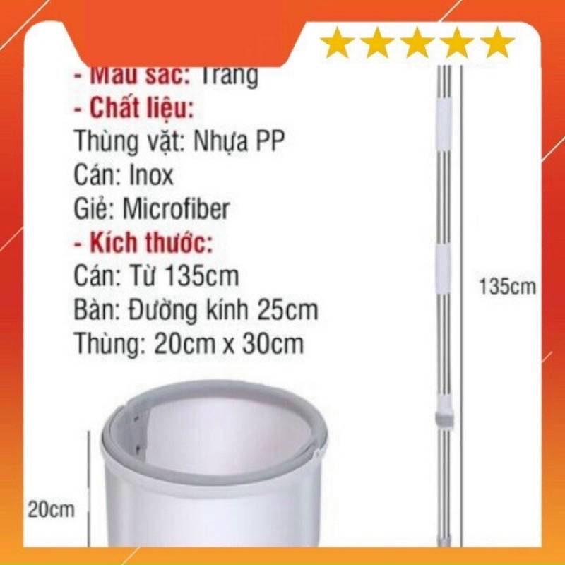 Bộ lau nhà thông minh MOP thùng vắt xoay tròn nhựa PP, Cán inox dài 134cm, miếng lau 25cmTHÔNG TIN SẢN PHẨM: