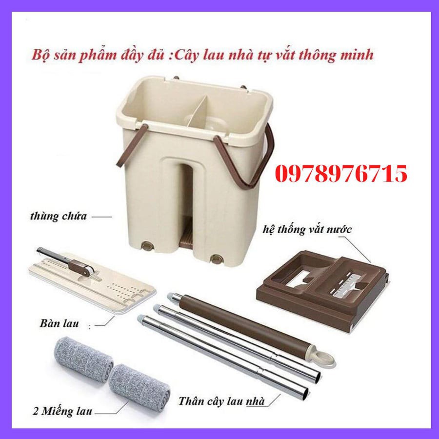 CHỔI LAU NHÀ TỰ VẮT THÔNG MINH. Thùng của cây lau nhà tự vắt gồm 2 ngăn: 1 ngăn giặt và 1 ngăn vắt khô. Bàn lau xoay 360 mọi ngách ngách đều có thể lau chùi sạch sẽ* Bộ chổi lau nhà tự vắt 360 độ thông minh đầy đủ bao gồm :