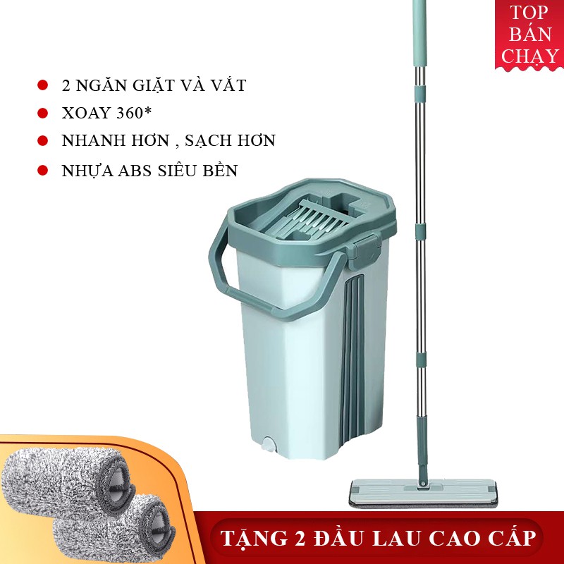 * Thùng 2 ngăn : 1 ngăn vắt khô tự động - 1 ngăn chứa nước để giặt cây lau
