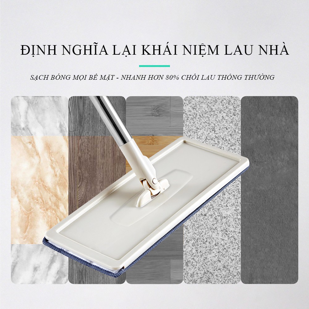 * Bộ lau nhà thông minh có bông lau dáng dẹt, có thể sử dụng cho sàn nhà, vách kính, trần nhà, cửa sổ, lau tường ...; Thậm chí, nếu bông lau khô còn có thể sử dụng làm chổi quét nhà ✅