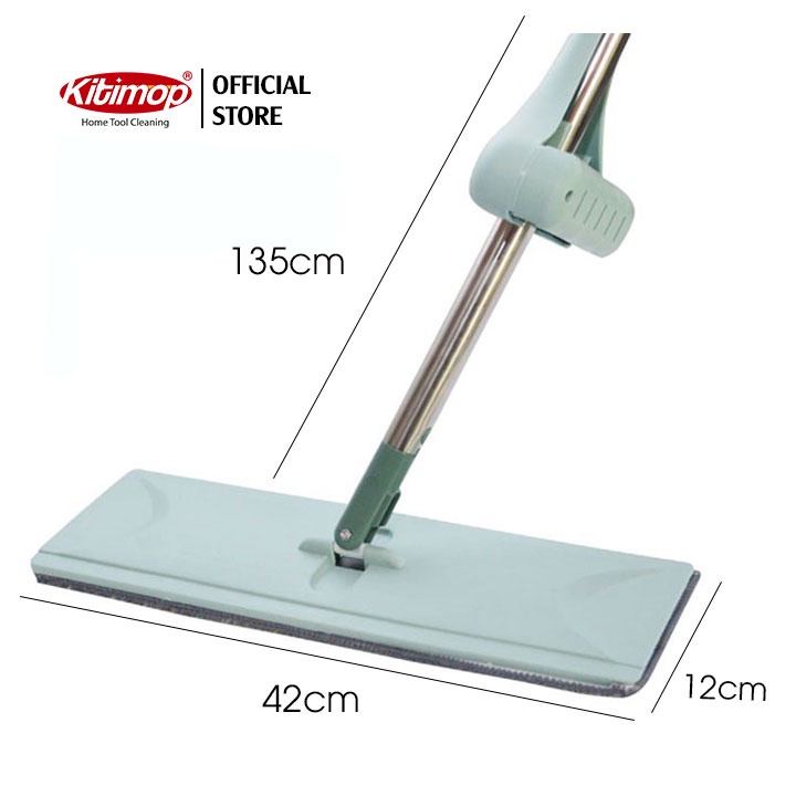 Cây lau nhà tự vắt thông minh Kitimop-X cán inox chắc chắn siêu bền, bàn lau dài 42cm lau sạch khô nhanh, 3 miếng lau