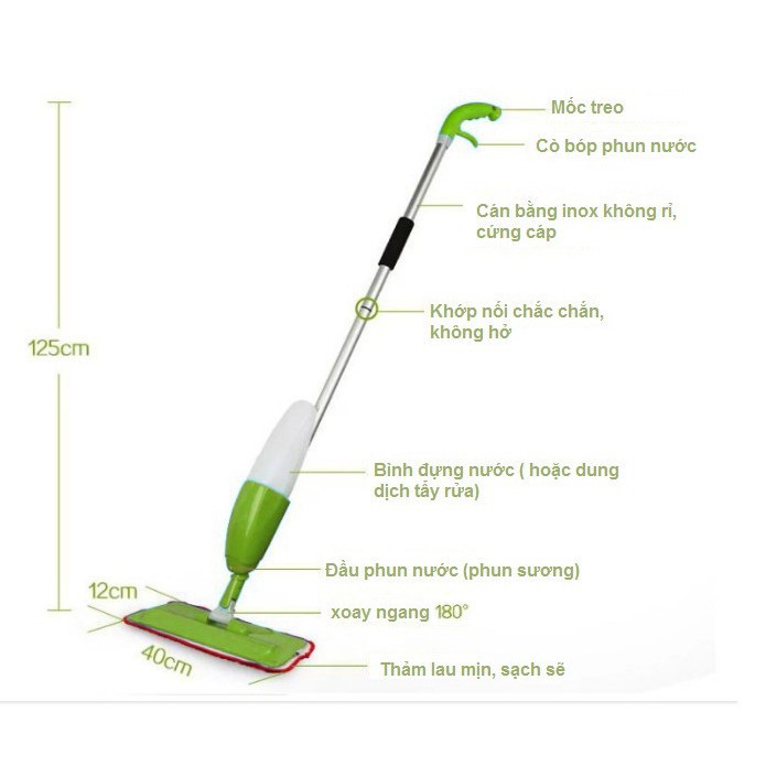 Chổi lau nhà phun sương thông minh xoay 360 độ phun nước dạng sương đồ dùng gia đình tiện lợi
