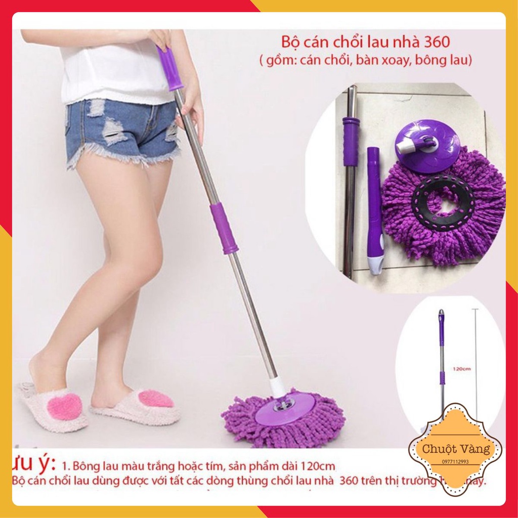 - Bộ cán chổi lau nhà đầu xoay 360 độ được thiết kế với độ dài có thể điều chỉnh linh hoạt, phù hợp sử dụng cho các loại thùng lau nhà dạng nhấn và cả dạng đạp, giúp bạn lau sạch cả những khe nhỏ của đồ gia dụng. Ngoài ra, đầu lau có độ thấm nước cao và khả năng phân giải đối với nước, tóc, bụi bặm, và rất dễ giặt rửa một cách nhẹ nhàng, thoải mái và không để lại dấu nước.