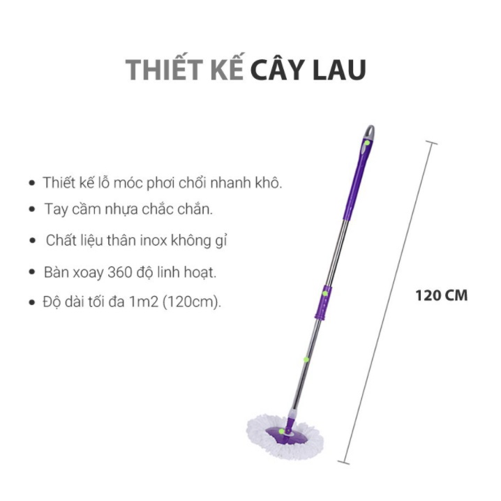 🍀 Than cây đuoc làm băng inox cán nhưa chăc chắn .Phần xoay 360 độ có khoá gạt để giữ bàn lau khi sử dụng .