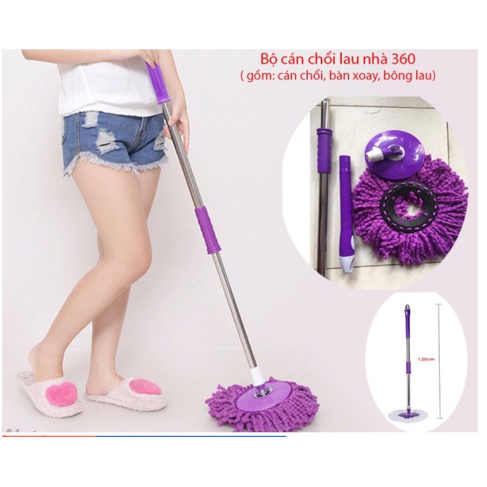Giới thiệu Cây chổi lau nhà xoay 360 thân inox FREESHIP kèm bông lau, cây lau nhà rời