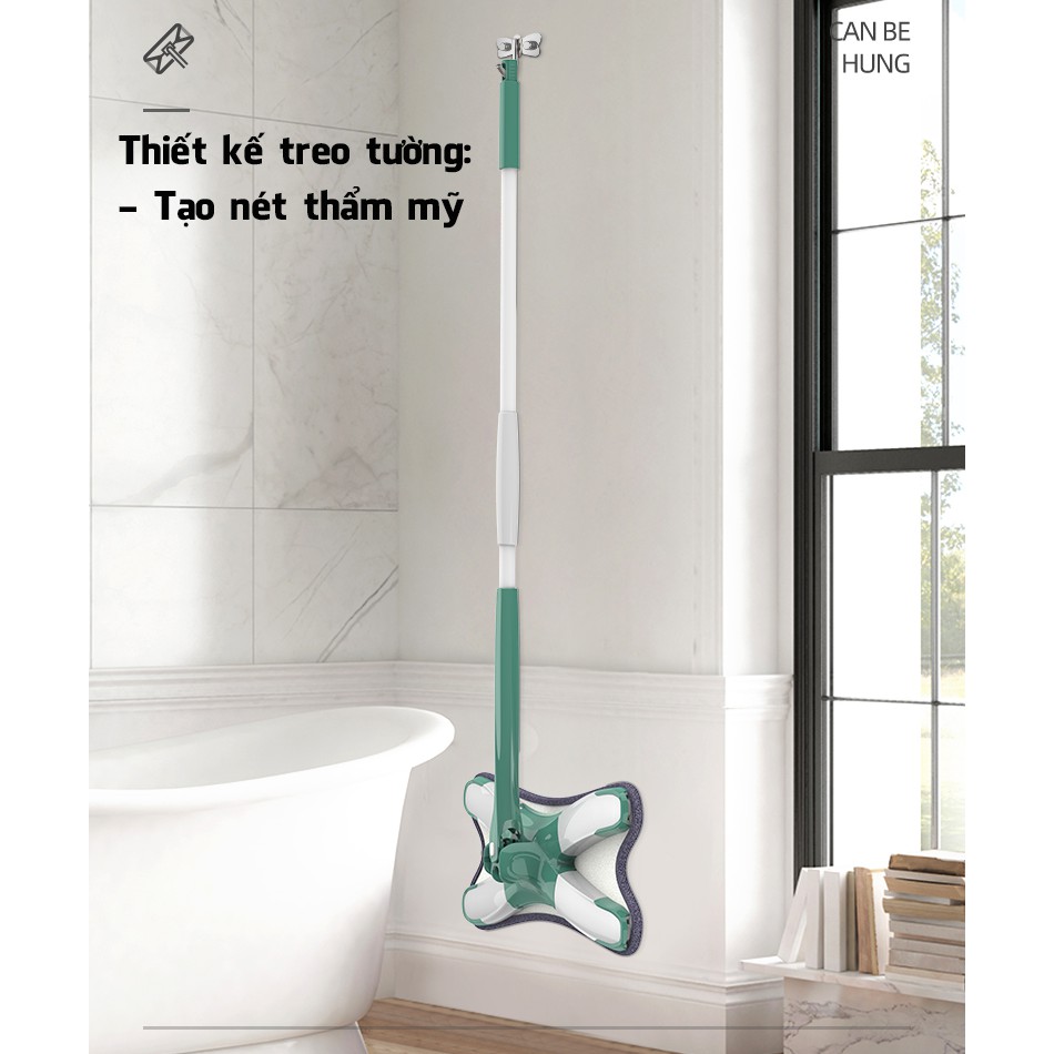 Cây lau nhà đa năng tích hợp vắt trên thân thông minh đầu lau xoay 360 độ tiện ích với khả năng lau sạch sàn nhà một cách nhanh chóng và nhẹ nhàng, phù hợp với mọi loại bề mặt sàn như sàn gạch, sàn gỗ, sàn đá, tường ốp gạch và mặt kính, phù hợp với mọi không gian và diện tích nhà có thảm lau sợi vải đa tầng mềm mịn thấm hút tốt lấy sạch từ tóc đến bụi mịn. được thiết kế thông minh và cực kỳ gọn gàng giúp tiết kiệm không gian bảo quản đặc biệt là nhà chung cư hoặc các căn nhà có không gian hạn chế.