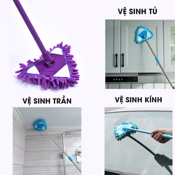Chổi lau đa năng hình tam giác dùng để lau chùi các vật dụng ở các nơi cao như điều hòa, trần nhà, cửa kính ... hoặc các vị trí khó như gầm giường, góc tường.- Thiết kế xoay 180 độ nên có thể linh hoạt vệ sinh nhiều vị trí, các góc tường, góc hẹp như gầm giường, gầm tủ...