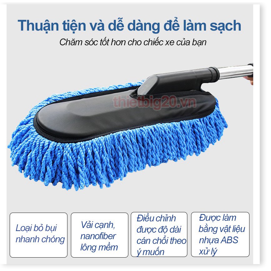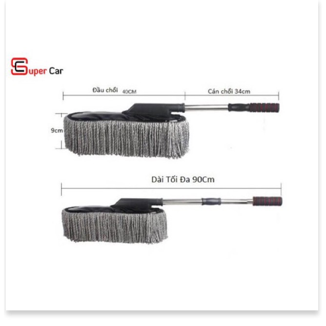 Giới thiệu Chổi Lau Xe Sợi Dầu bản to, cán có thể điều chỉnh co rút