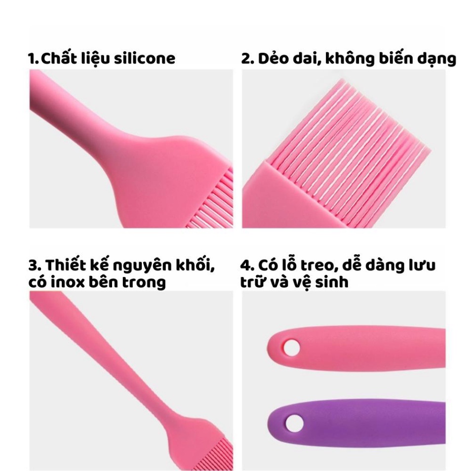 - Các lông cọ quét dầu cũng làm từ chất liệu silicon có độ dẻo dai và bền rất cao, không rụng vào đồ ăn và vẫn linh hoạt mềm mại khi sử dụng
