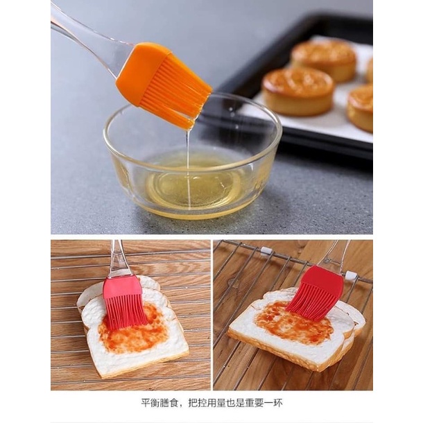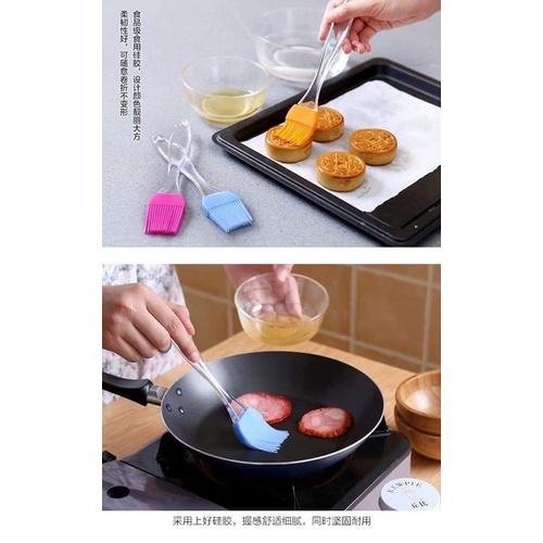 - Quét Bằng Silicone được dùng để quét, phết bơ, trứng, nước đường,dầu lên mặt bánh tiện lợi, dùng để phết thêm dầu, gia vị vào đồ nướng.