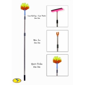 Chổi quét 3 trong 1: quét mạng nhện, lau kiếng trên cao, móc phơi đồ linh tinh... (TC.68957)Cán bằng inox
