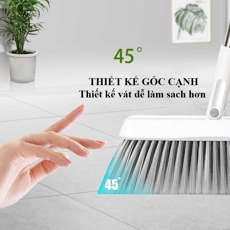 Chổi quét nhà thông minh có Thiết kế thông minh với cán dài, hót rác hình hộp, bạn có thể yên tâm về việc rác, bụi sau khi quét sẽ không bay ngược lại ra nhà.