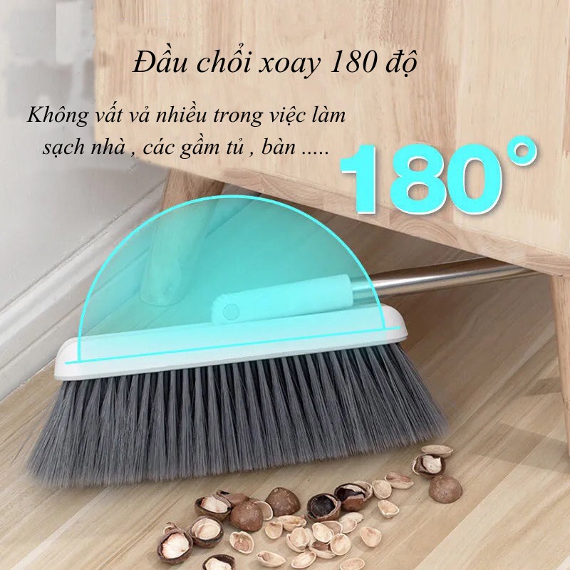 4. Đầu chổi xoay 180 độ linh hoạt để dễ dàng quét sạch các loại góc như gầm giường, góc sofa, gầm bàn