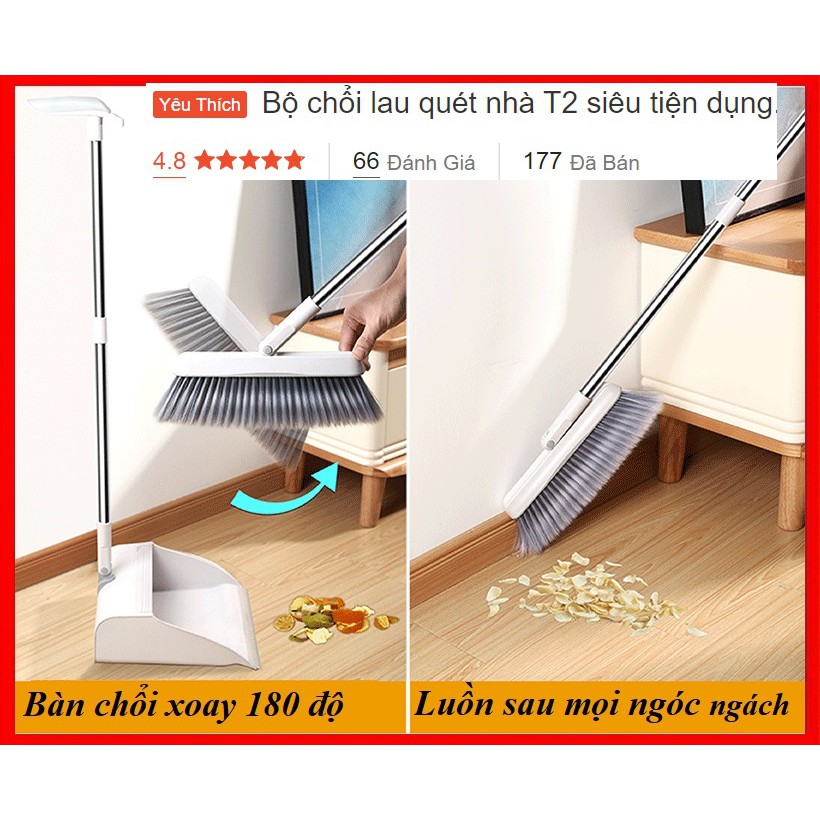 – Thiết kế thông minh với cán dài, hốt rác, bạn có thể yên tâm về việc rác, bụi sau khi quét sẽ không bay ngược lại ra nhà.