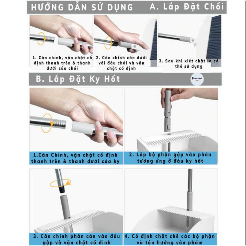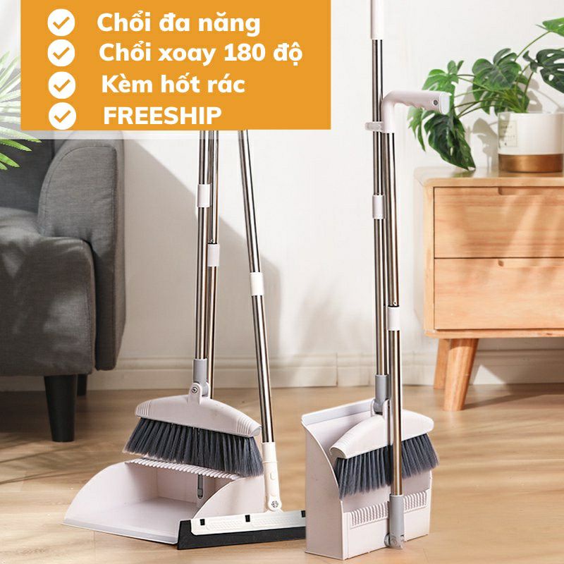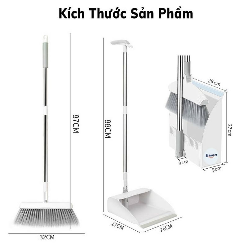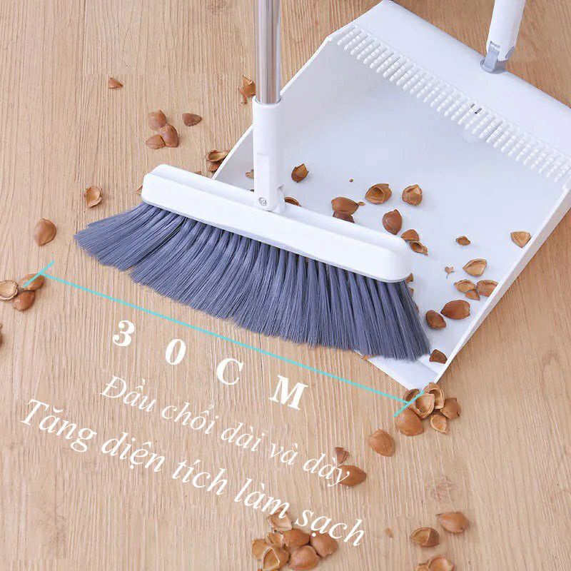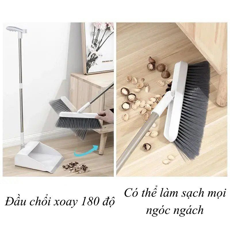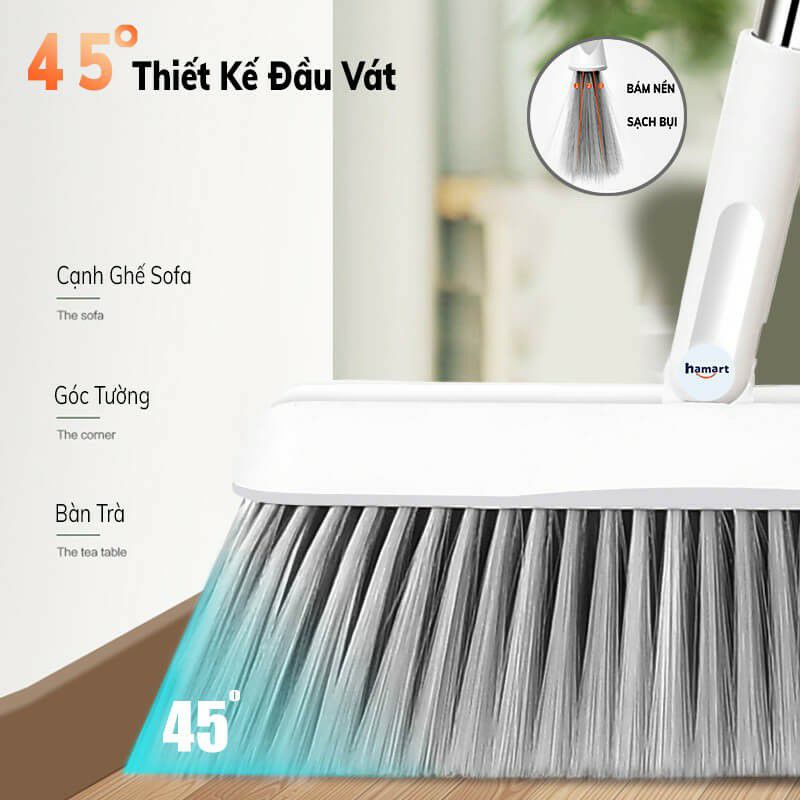 - Thiết kế thông minh với cán dài, hốt rác, bạn có thể yên tâm về việc rác, bụi sau khi quét sẽ không bay ngược lại ra nhà.
