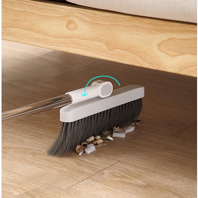 🔹Đầu chổi xoay 180 độ linh hoạt để dễ dàng quét sạch các góc khuất như gầm giường, gầm sofa, gầm bàn.