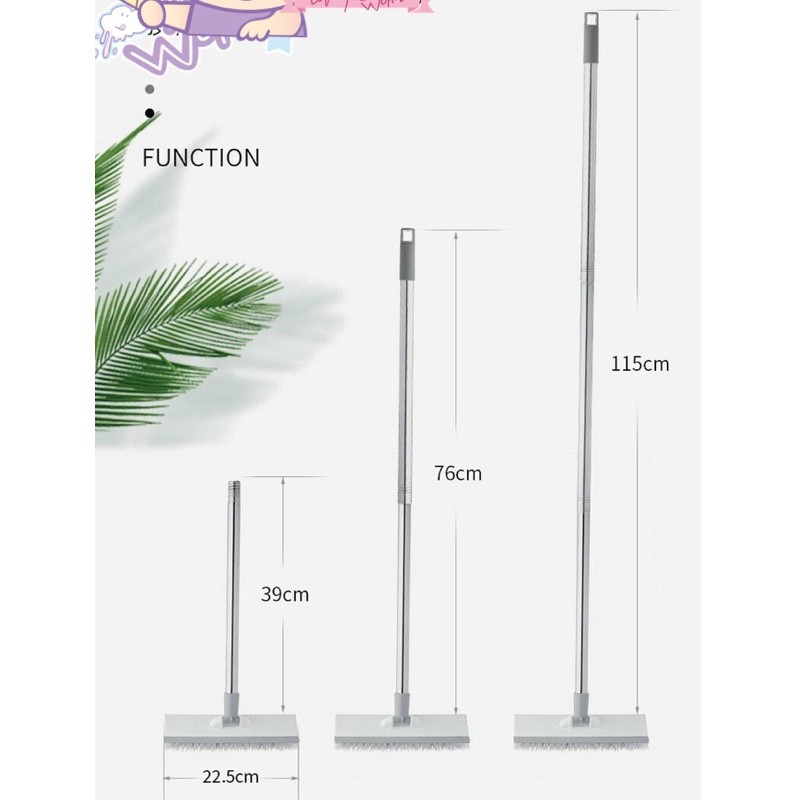 ✔Sử dụng hai mặt : với thiết kế gọn một mặt quét dễ dàng điều chỉnh loại bỏ vết bẩn trên sàn nhà vệ sinh và các cạnh góc chết , một mặt cạo và làm sạch.