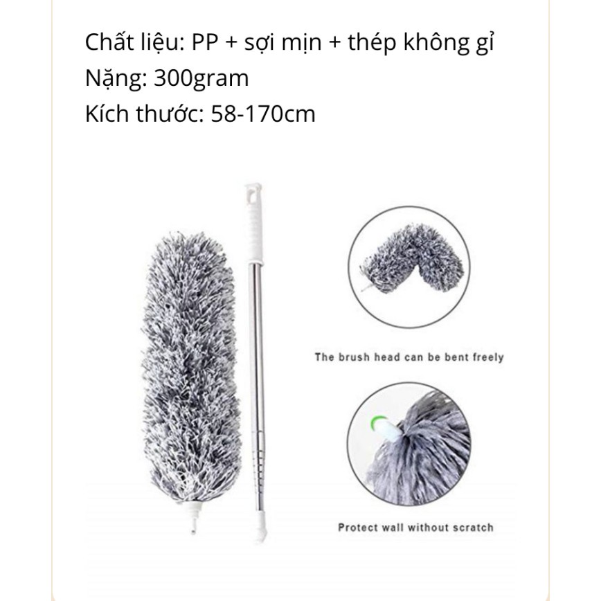 Giới thiệu Chổi Quét Trần Bằng Sợi Vải Siêu Nhỏ Inox Cán Dài Cao Cấp Đầu Chổi Linh Hoạt