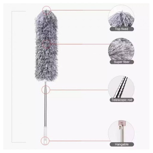 - Đầu chổi lông có thể gập 90 độ hoặc vặn xoắn giúp việc lau bụi tại trên các giá sách, kệ đồ trên cao trở nên dễ dàng mà không cần bắc thang, có thể lau tại các góc cạnh, bề mặt, đỉnh tủ vv.. có thể lau bụi ở khắp mọi nơi, tại những góc chết mà chổi thông thường không thể với tới.