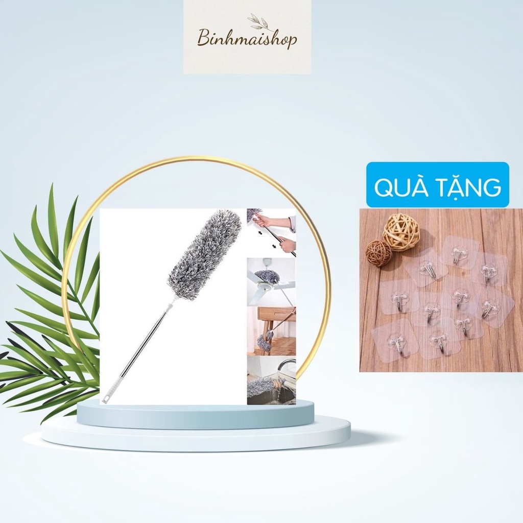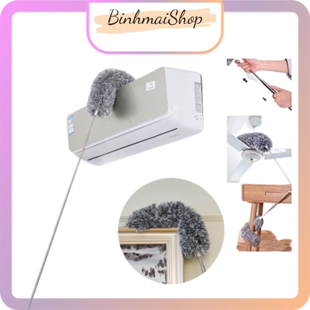 Chổi Quét Trần Lau Bụi Đa Năng có cán điều chỉnh độ dài và xoay 360 độ đa năngChất liệu: thép không gỉ + sợi vải