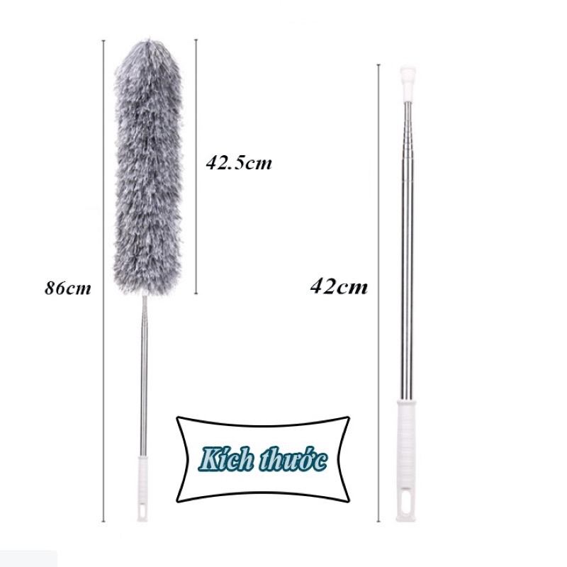 + Cán chổi bằng Inox có thể kéo rút với chiều dài từ 0,7-2,80m giúp việc lau gần hay lau xa thật đơn giản và tiện lợi.+ Lông chổi với chức năng hút, cuốn, giữ mọi bụi bẩn tránh việc quét đẩy bụi từ nơi này sang nơi khác, bụi li ti bay trong không khí làm ảnh hưởng đến sức khỏe