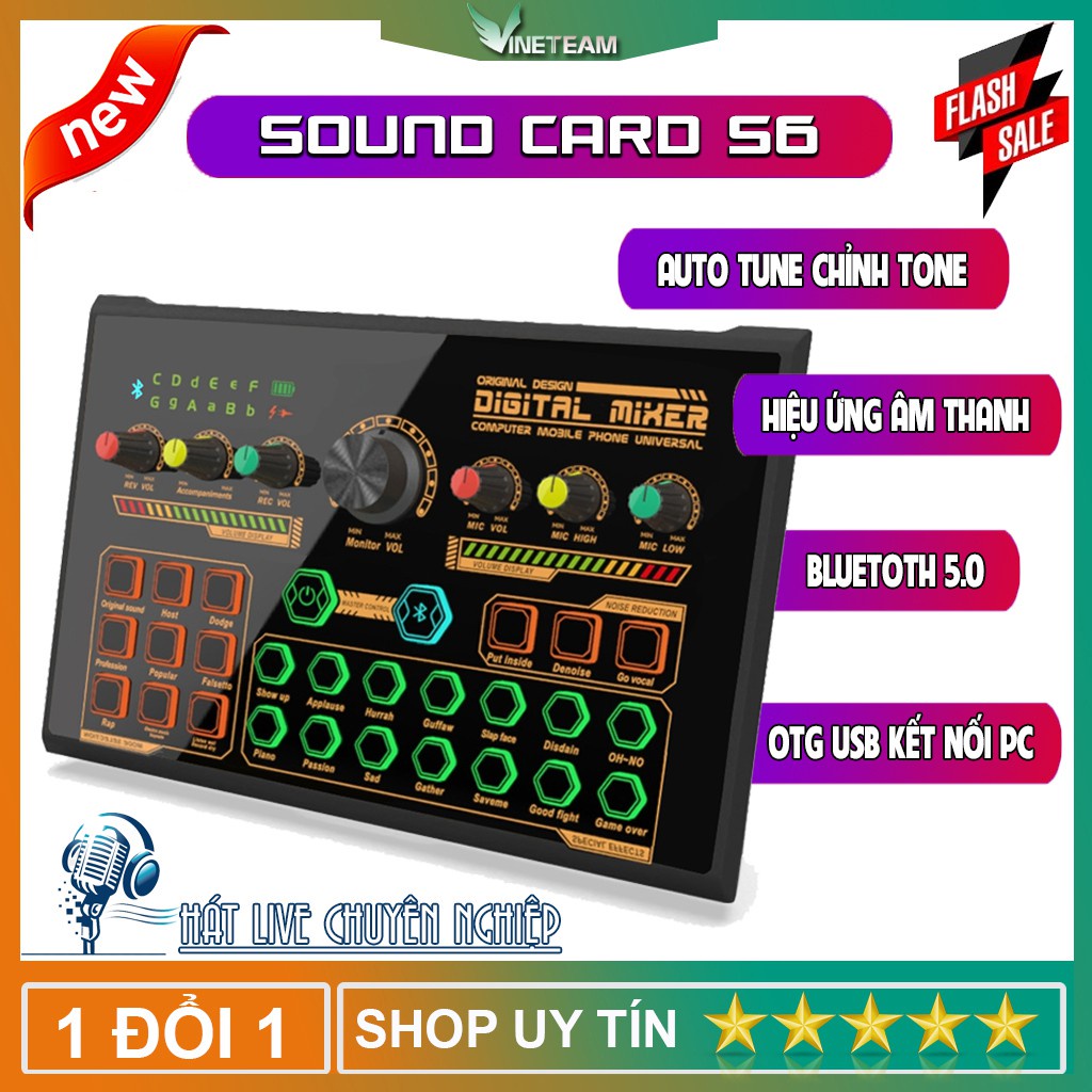 Thiết Bị Âm Thanh > Amply và đầu chỉnh âm || [Mã 44ELSALE2 giảm 7% đơn 300K] Bộ chộn âm thanh karaoke Mixer S6 USB có Bluetooth Hỗ trợ Auto Tune -dc4470Còn hàng